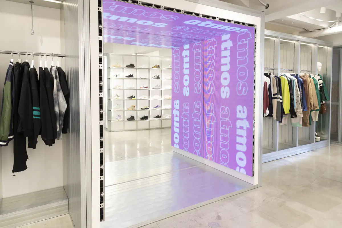 女性向けスニーカーセレクトショップ「atmos pink flagship 原宿店」は、セレクトショップとしては日本初となる店内ダンススタジオ併設型の店舗として2022年2月にリニューアルオープンしました。ダンサーが練習できるスペースを備え、ダンスカルチャーとストリートファッションを融合した空間になっています。
