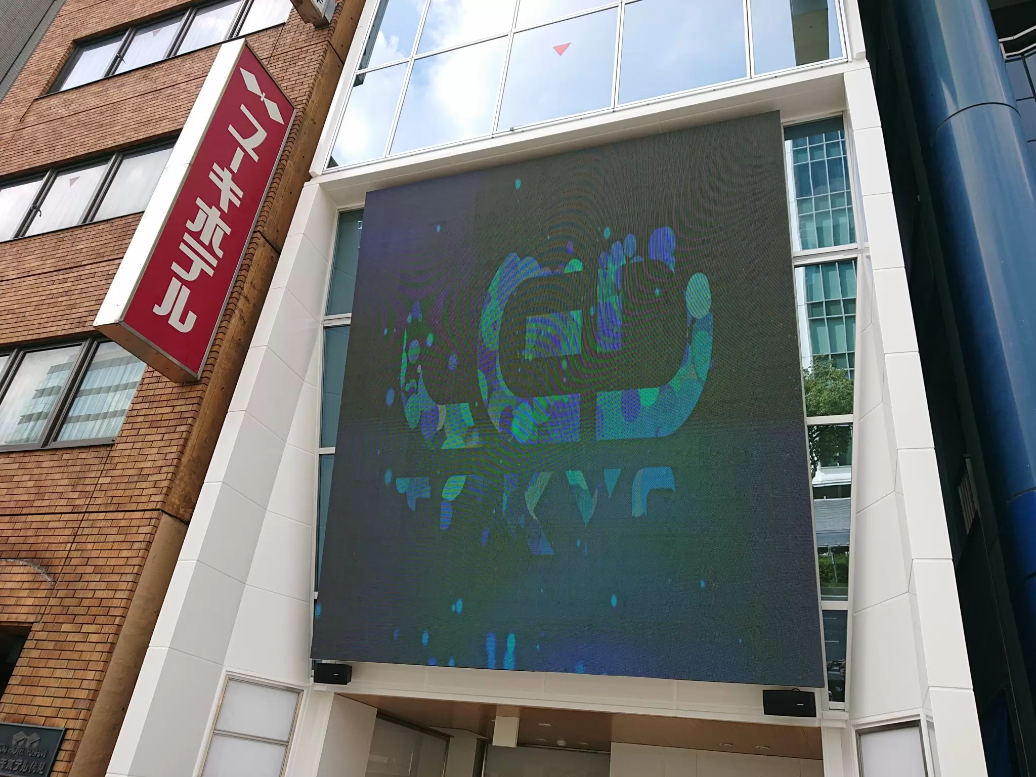 導入した製品は、屋外環境に対応した高輝度タイプのLEDビジョン。ピッチサイズは3.9mm、画面サイズはおよそW4,000mm×H4,500mmで、映像解像度は1,000pxを超える高精細仕様です。防水・防塵性能を備え、天候に左右されず安定した映像表示を実現。昼間の直射日光下でも鮮明な映像を再生でき、企業広告やテナント紹介、地域イベントの告知など、デジタルサイネージとして多目的に活用可能です。