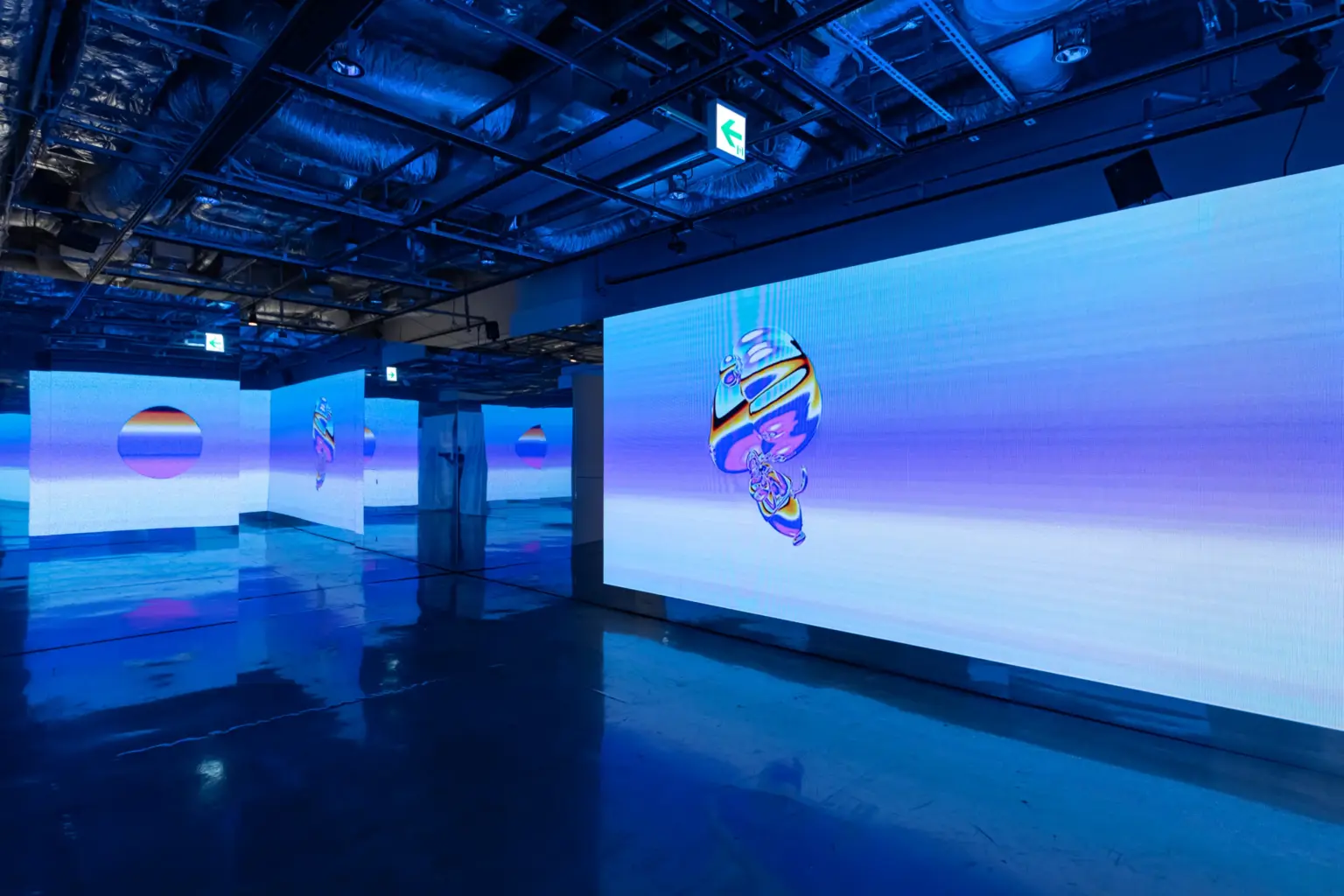 続いて心斎橋PARCOの14F「PARCO GALLERY」でも同展が巡回開催されました。ここでもP3.9ピッチの屋内用LEDビジョンが採用され、大型ビジョンと縦長ディスプレイを組み合わせた多面的な映像表現が導入されました。観客は視覚的インパクトのある空間に包まれることで、作品理解が深まり、SNSでも数多く拡散されました。このように、高精細なLEDビジョンはイベントの集客力を高める強力なツールとして機能し、商業施設における新たな価値を生み出しました。