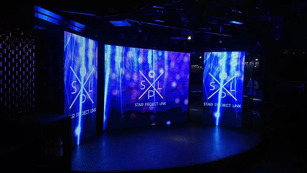 使用した製品は屋内用LEDビジョン(ピッチサイズ4.8mm)で、メインスクリーンはW2,500mm×H2,000mm、サイドスクリーンはW1,000mm×H2,000mmを2面設置。高精細かつ均一な発色により、映像の明瞭度と立体感を両立しています。大型店舗の広い空間でも十分な視認性を確保し、照明演出や音響と連動した空間演出を可能にしました。
