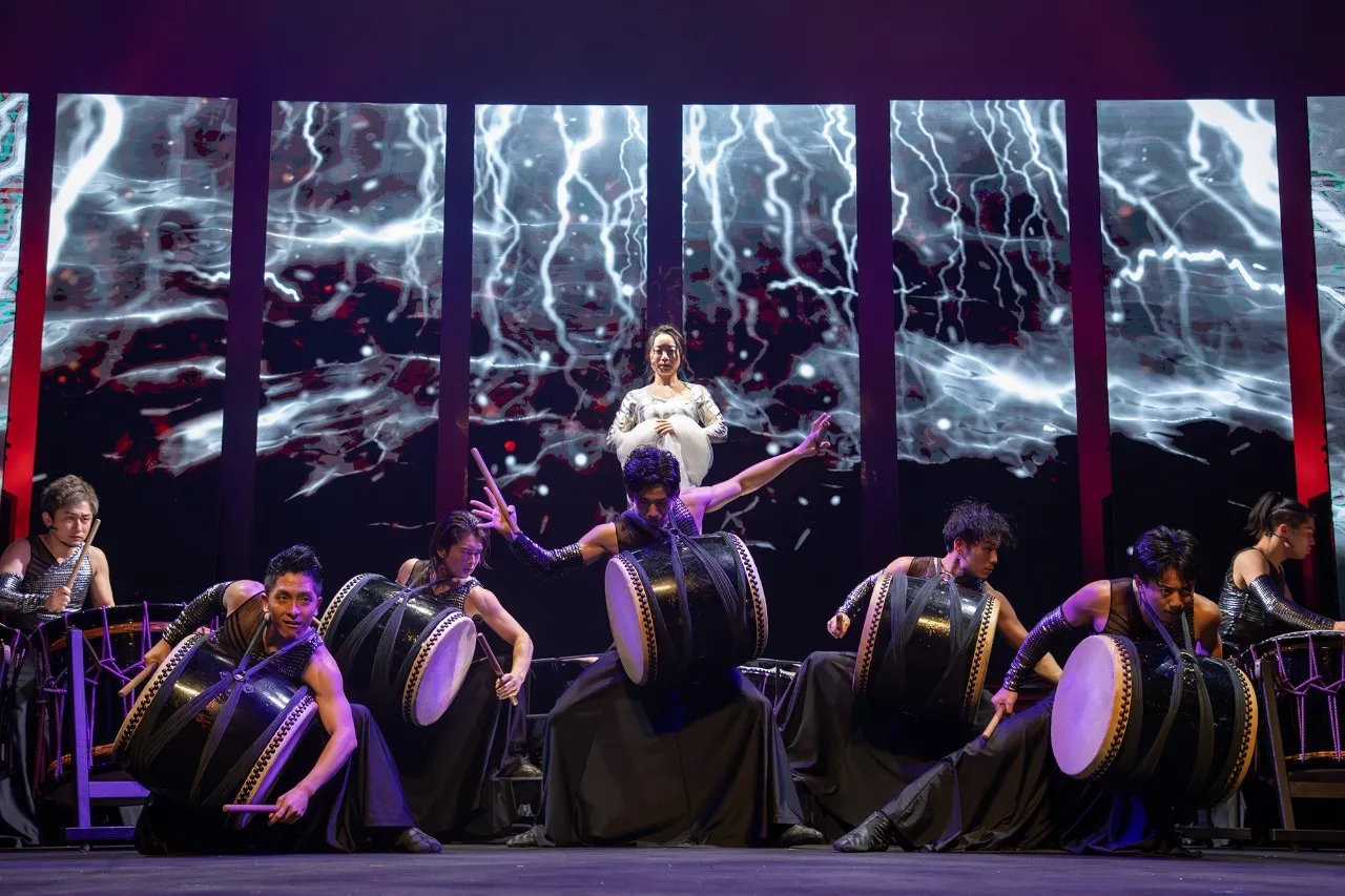 導入したのはピッチ3.9mmの屋内用LEDビジョンで、解像度6,144×256pxの長尺パネルを活用しています。高コントラストの映像は暗転時の黒を深く表現でき、太鼓の力強い打音やシーン転換に合わせた映像演出を鮮明に映し出し、遠距離からの視認性、ステージ全体の一体感、臨場感の強化を実現しました。LEDビジョンの映像表現は観客の没入度を高め、舞台全体を盛り上げる重要な演出基盤となっています。