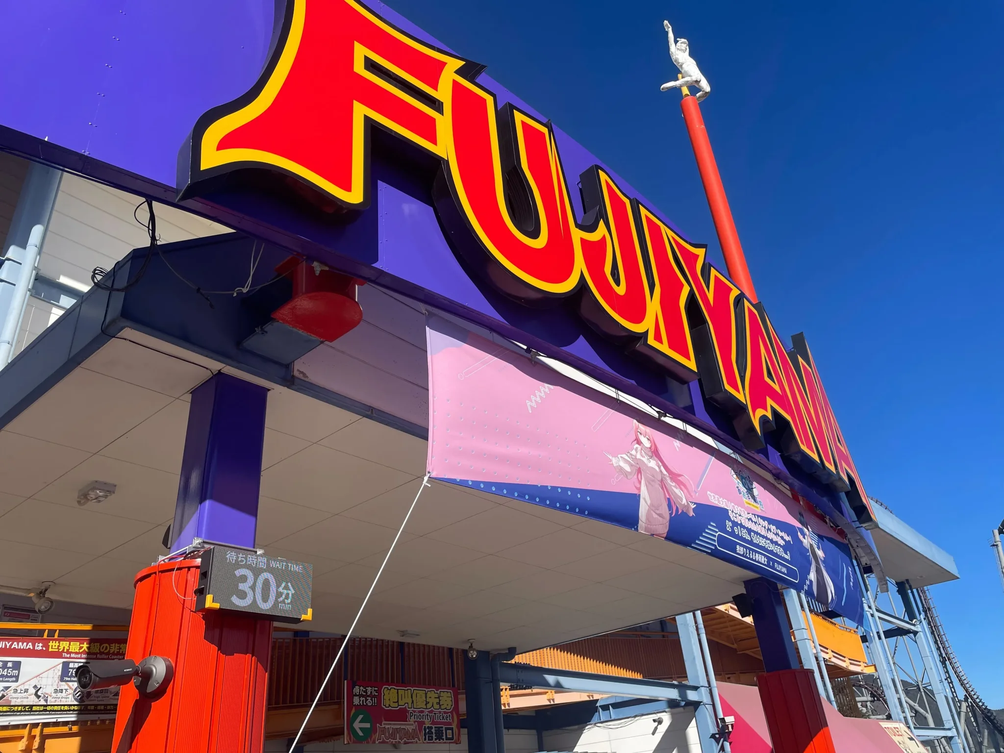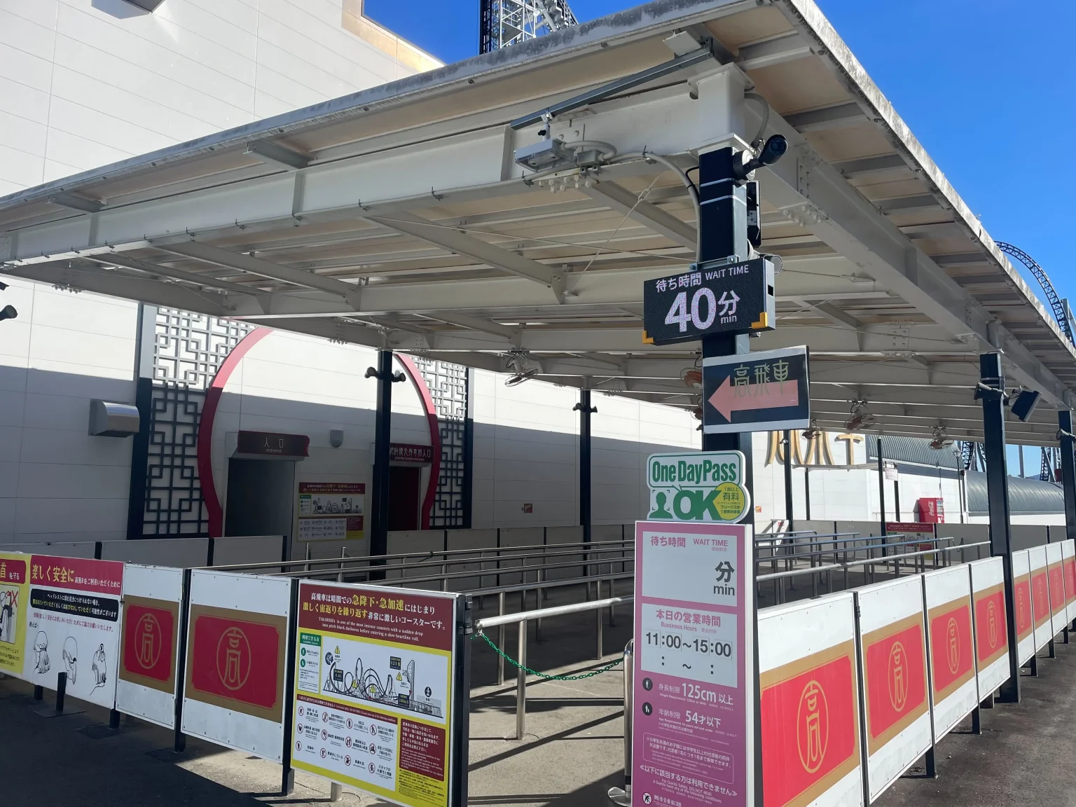 園内各所に設置された屋外用LEDビジョン(P2.97)は、「FUJIYAMA」や「鉄骨番長」「トンデミーナ」など主要アトラクションの待ち時間や運行情報をリアルタイムで表示するために活用されています。LEDならではの高輝度・高精細な表示で、屋外の強い日差しの下でも視認性が高く、遠方からでも一目で確認が可能。