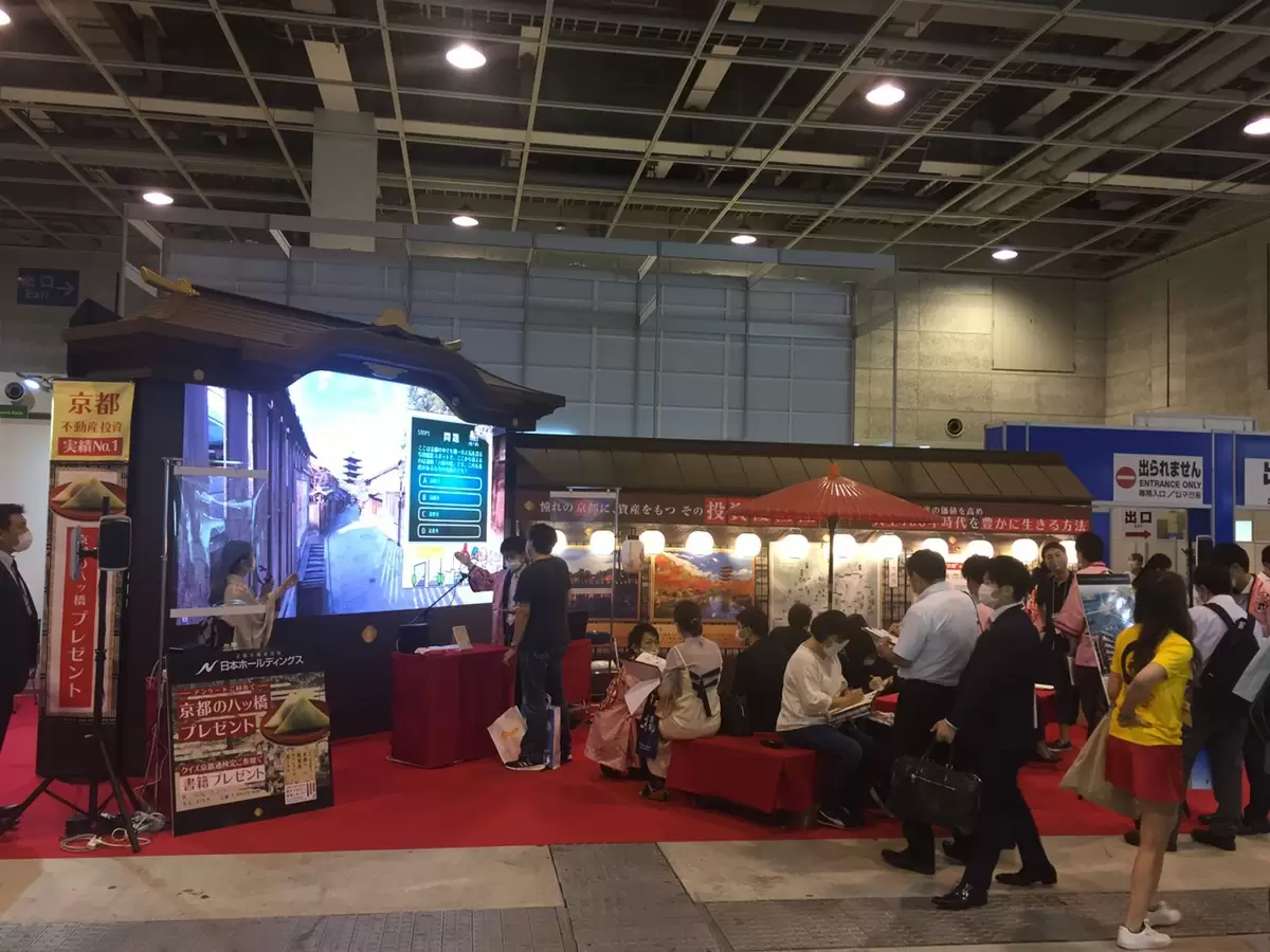 本事例では、日本ホールディングス株式会社様が出展した資産運用EXPO(会場:インテックス大阪)にて、屋内用LEDビジョン(W3,500mm×H2,000mm/ピッチ2.97mm)を導入しました。会場は不動産・保険・株式・金など、幅広い投資分野の企業が集う大型展示会で、同社は京都の不動産投資の魅力を発信。