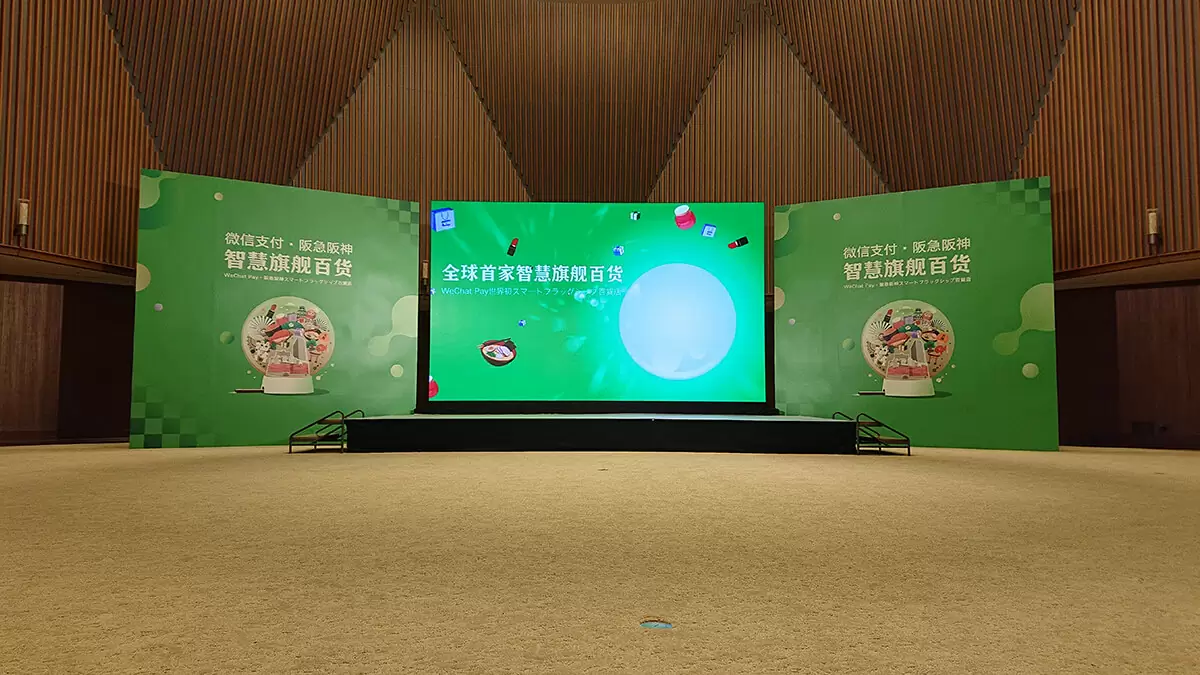 今回は、阪急阪神百貨店が「WeChat Pay スマート旗艦百貨店」に認定された際の記者会見で導入されたLEDビジョンの事例をご紹介します。訪日中国人向けの取り組みとして、先進的なデジタル演出が行われた現場です。